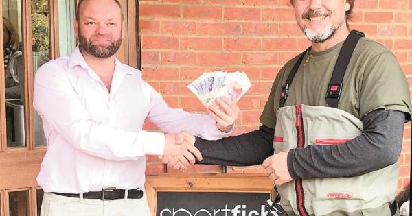 Martin Thumwood (right) receives a cool £750 from Sportfish team member Jonathan Tomlinson