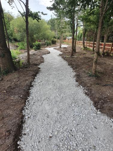 Flattening the area, establishing a path, creating a viewing platform and opening up a stream has been also undertaken for a wild play area.