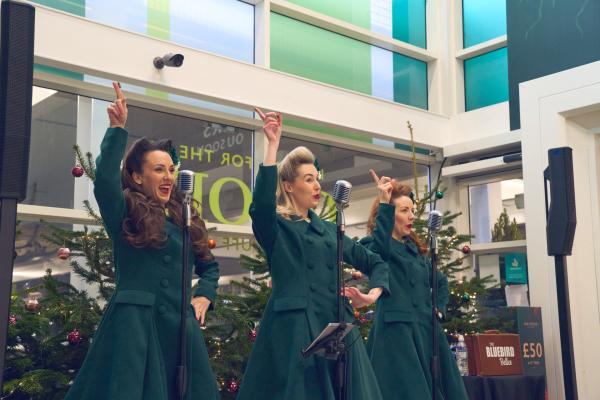 Singing trio The Bluebird Belles set a seasonal tone as customers sampled some of the products available in this year’s Waitrose Christmas range.