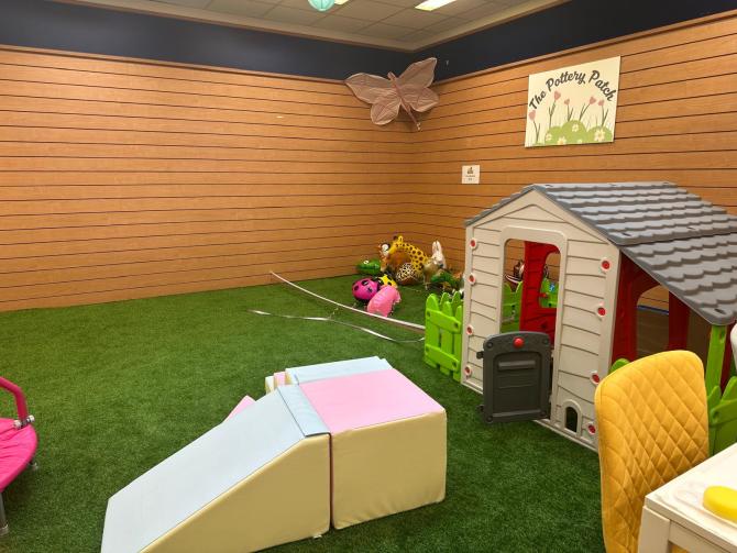 The studio offers pottery painting sessions and there is also a play zone for youngsters, called The Pottery Patch.