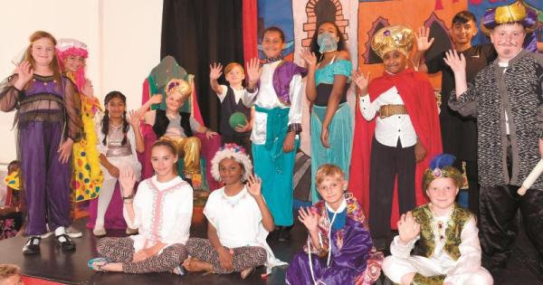 Year six pupils put on a production of Aladdin Trouble, an adaptation of the tale featuring pantomime staples including a dame.