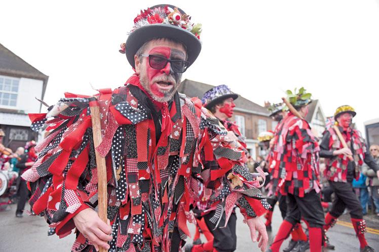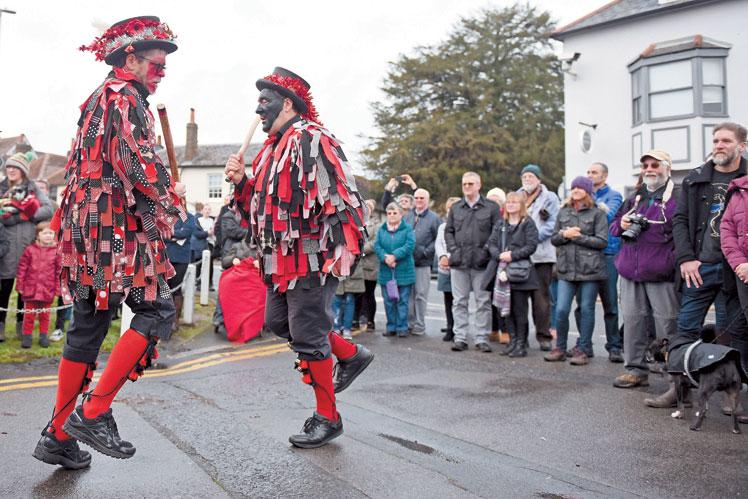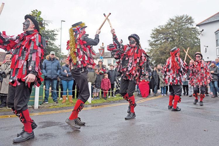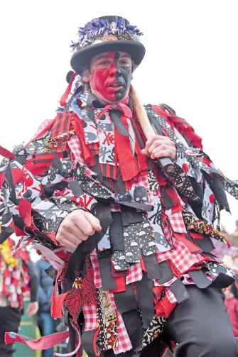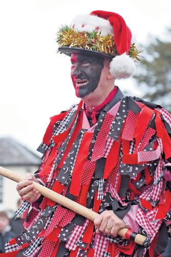 Morris dancers slapped their faces with red and black paint and donned extravagant outfits for a Boxing Day performance.