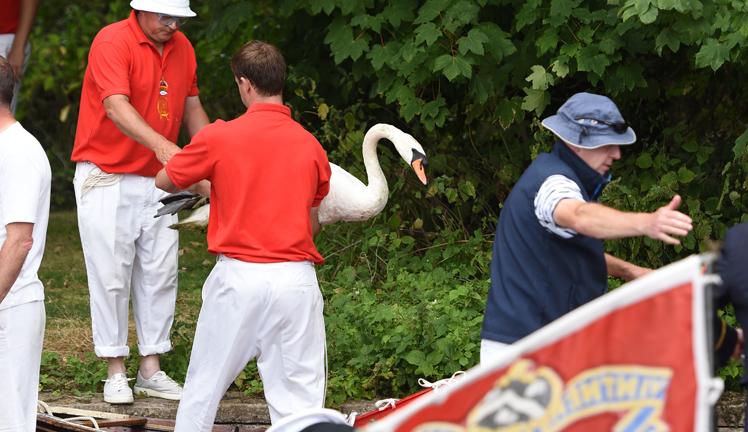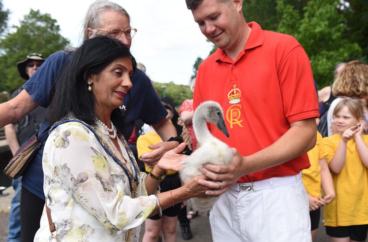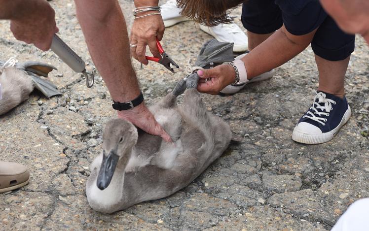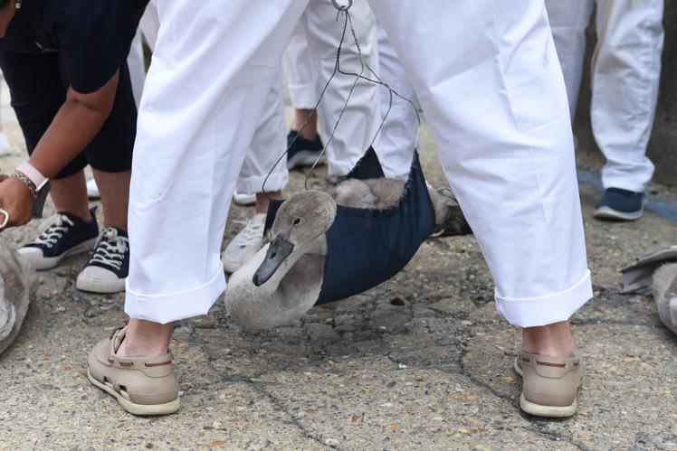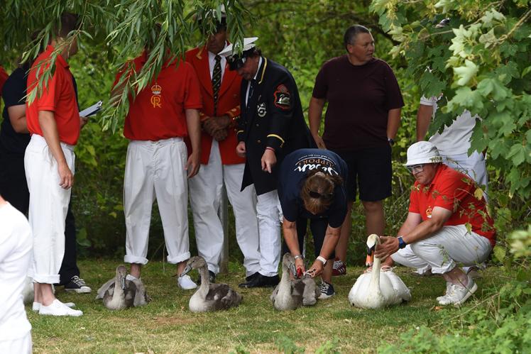 With the help of The King’s Swan Warden, whose role is non-ceremonial and scientific, the cygnets are ringed with individual identification numbers.