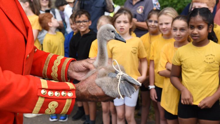Pupils from Eton Wick First School, Holy Trinity Primary School and Cookham Rise Primary School enjoyed a talk on Swan Upping and got a chance to see the cygnets during the event.