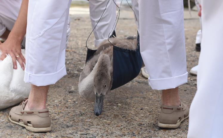 As part of the census, the cygnets are measured and weighed to estimate their growth rate and are examined for signs of injury or disease.