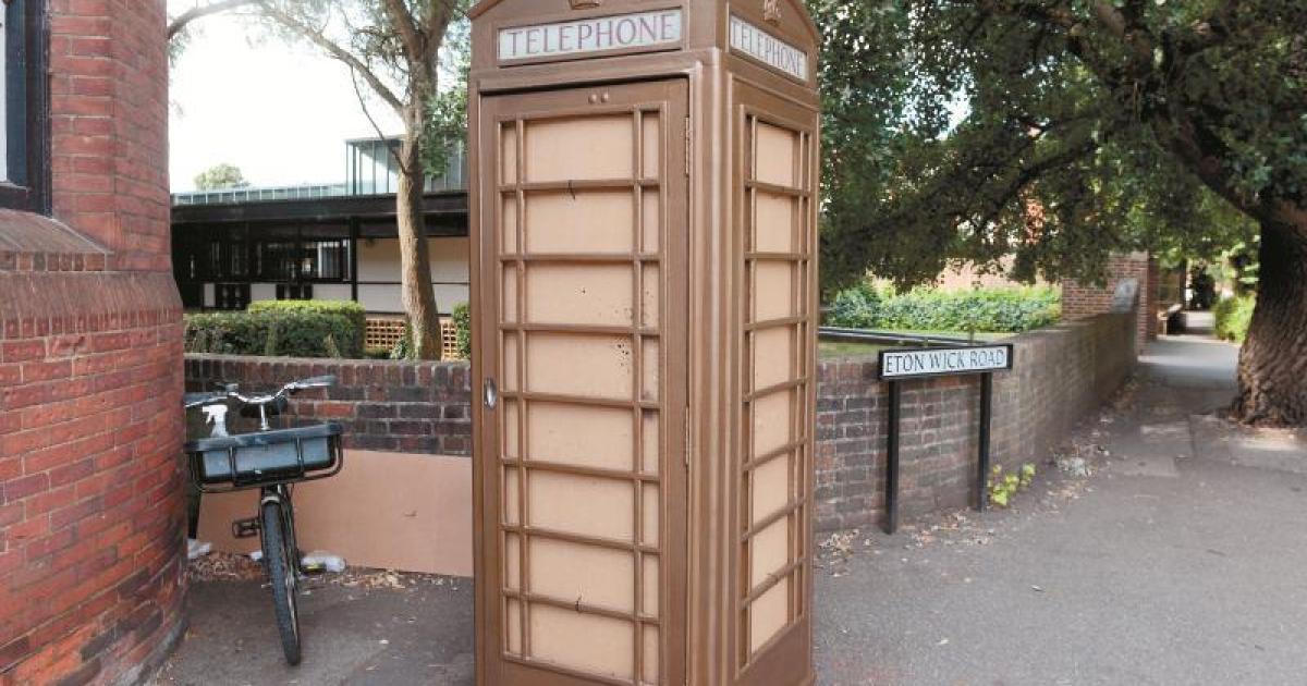 The boarding school was planning on painting the phone box ‘Eton blue’ but changed its mind last minute to honour its ex-pupil.