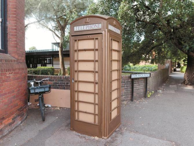 The transformed phone box is on the corner of Keats Lane and Eton Wick Road, next to the college’s Bekynton building.