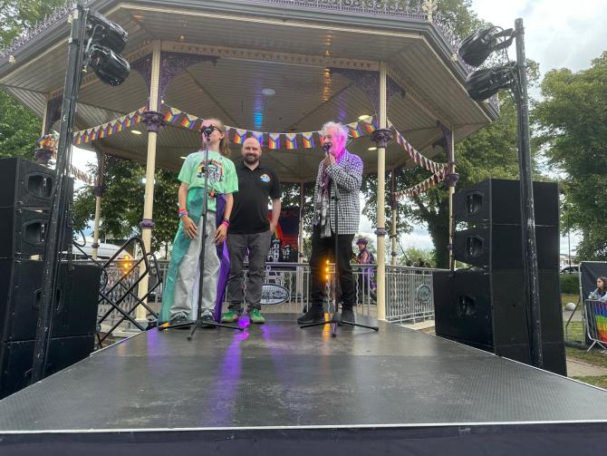 On the main bandstand stage, Windsor & Eton Pride chair Steve Harris and trustee Fiona Lamond, welcomed guests to the event.