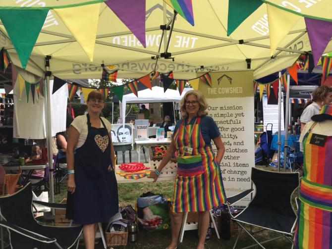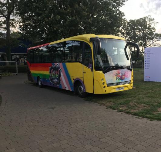 Newbury Pride had brought along its bus and the team were hosting a stall selling a range of colourful items.