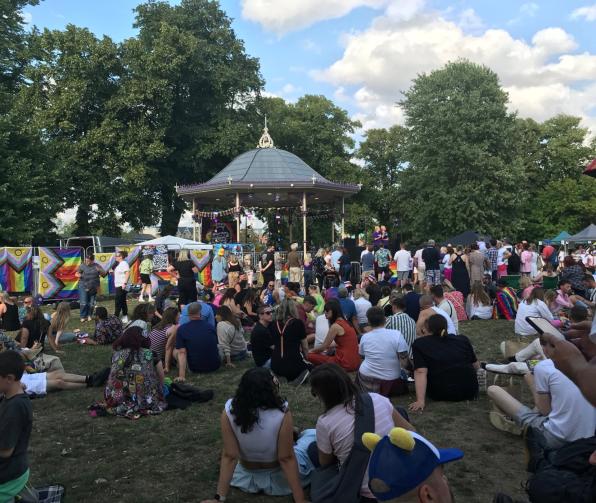 The park was packed with attractions including a pride village, a cinema and talks tent and a karaoke lounge in the community zone, a SafeSpace4All area with health and wellbeing stalls, bars serving alcoholic and non-alcoholic drinks, food vendors, a main bandstand stage and a second stage, known as Indie Rabble Rowsers.
