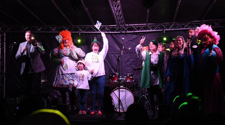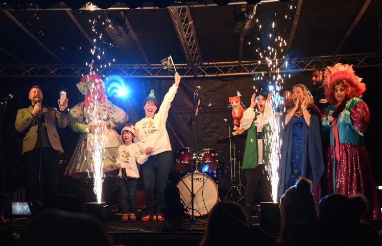 Crowds watched on as the winner of Norden Farm’s Comet art competition joined panto stars on the main stage outside the Town Hall for the countdown at 6pm.