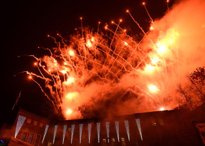 Fireworks lit up the night sky as the wet weather subsided just in time for the Christmas lights switch-on in Maidenhead town centre on Saturday.