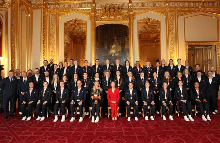 At Thursday’s reception The Princess, dressed in a red suit, welcomed the Red Roses into the castle and spent time speaking with team members.