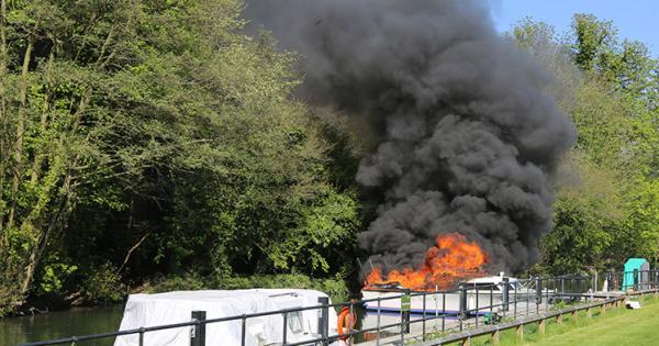 Firefighters from Maidenhead and Oxfordshire were joined by Royal Berkshire Fire and Rescue Service’s water rescue unit, but the boat had been ‘completely destroyed’ by the time they were able to put the fire out.