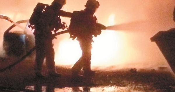 It took about two hours for firefighters to put out the inferno of 14 cars, which they prevented from spreading to a nearby building.