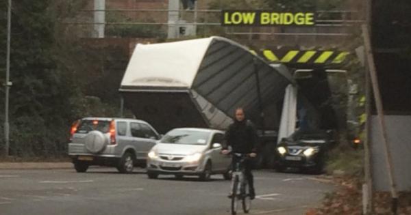 The lorry was reported to have smashed into the bridge, which is signposted ‘low bridge’, at about midday.