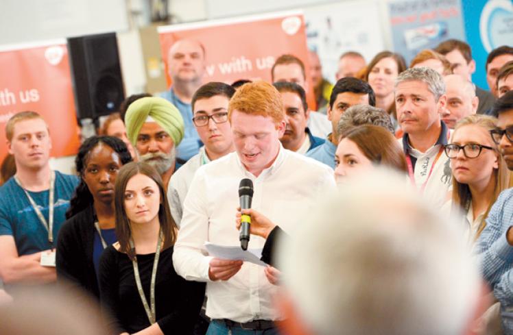 May answered questions from employees on a number of issues including making further education more rounded and her government’s work on lowering house prices.