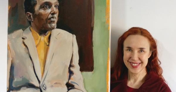 Inge du Plessis was one of three finalists in the Sky Arts competition who painted author and broadcaster Lemn Sissay at the National Portrait Gallery in London.
