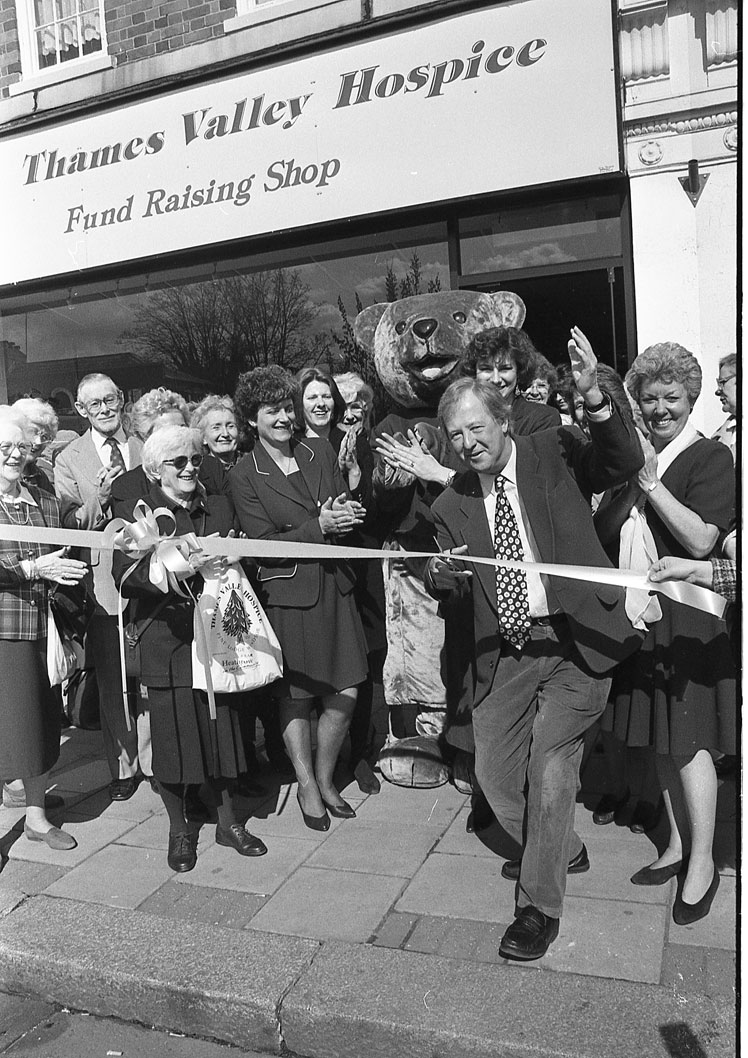 Goodies star Tim Brooke-Taylor cut the ribbon outside the Thames Valley Hospice shops at The Colonnade.
