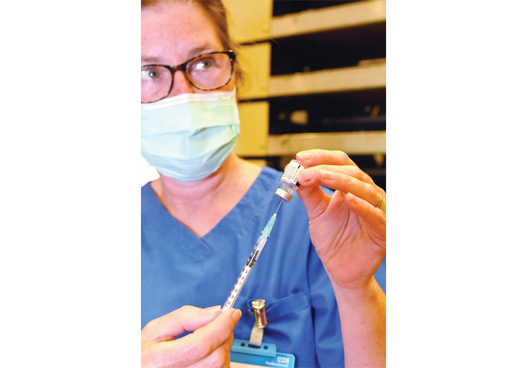 Dee Mitchell administering jabs at Maidenhead Town Hall.