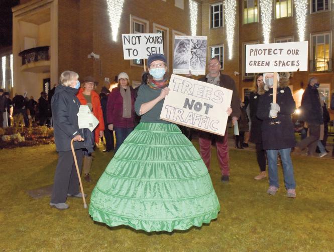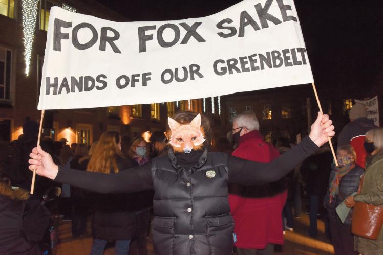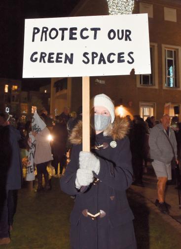 Protesters are adamant that the council should not develop on the golf course site, which is greenbelt land, with many bringing placards, masks and pets to help amplify their voices.