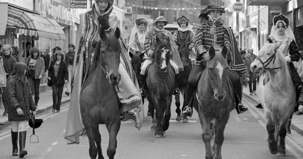 1982: Queen Elizabeth I and her court stopped Maidenhead’s Saturday morning traffic as they rode down High Street with Lord Burghley.