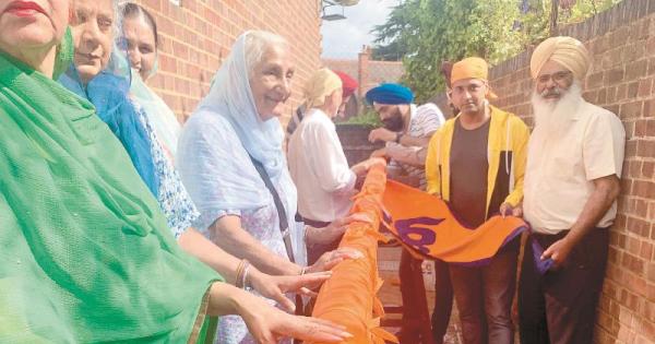 “Today we honoured the Nishan Sahib and washed and replaced the Khanda which can be seen flying proudly from across Maidenhead.”