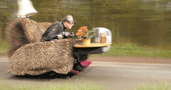 The ‘Casual Lofa’ has a hand-crafted Mars Bar handbrake, pizza-tray steering wheel and flower pots as indicators. Under the bonnet is an A-series Mini engine. It will be parked next to the switch-on bus on the night.