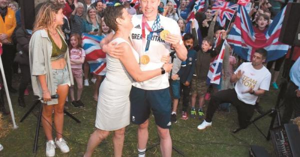 Tom and his family made the relative short trip up the M4 to Maidenhead, where hundreds of people were waiting outside his home by the River Thames, ready to acclaim Britain’s first double Olympic swimming champion in 113 years.