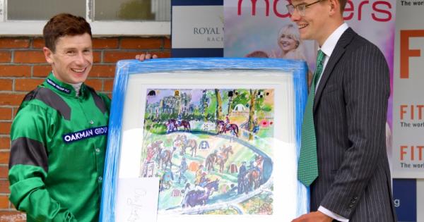 Clerk of the course Charlie Rees presented the jockey with a painting by equine artist Elizabeth Armstrong, which featured most of his Windsor winners from 2024.