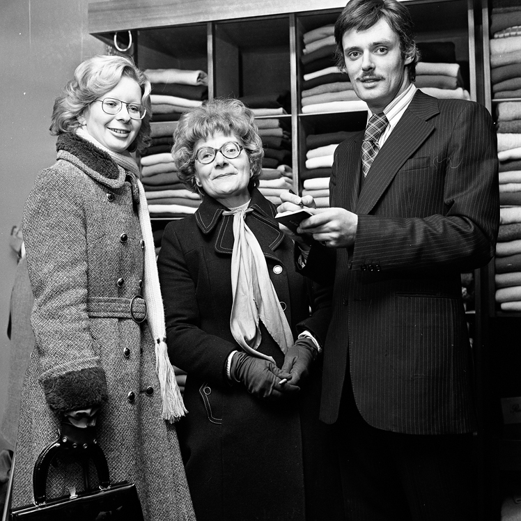 1974: Actor Simon Williams, who played Major James Bellamy in Upstairs Downstairs, signed autographs as he visited men’s outfitters John Goodwin in Maidenhead High Street.