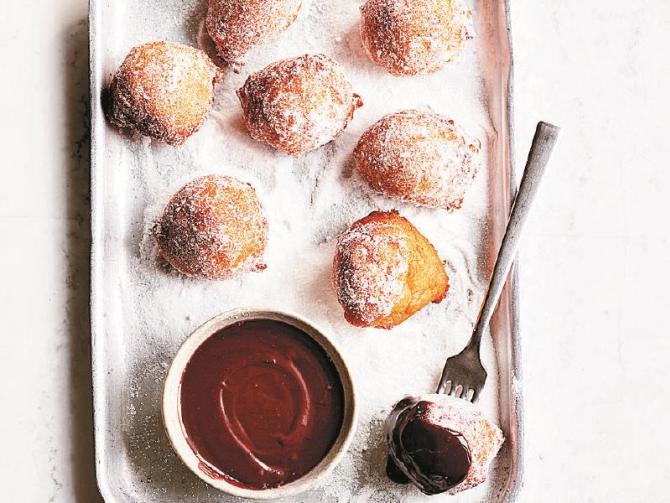 “Thanks to the ricotta, the doughnuts are golden and crunchy on the outside but light and pillowy inside, and amazing when dipped in chocolate sauce. You don’t have to add the chilli, but it adds a warmth to the chocolate that really works.”