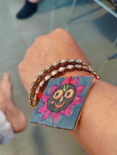A group of children also made recycled wristbands for devotees by reusing old cardboard boxes while the event's interior decorations used reusable and natural products.