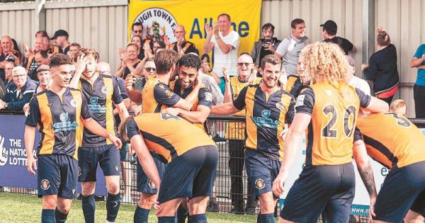 Slough Town players celebrate. Photo: George Beck