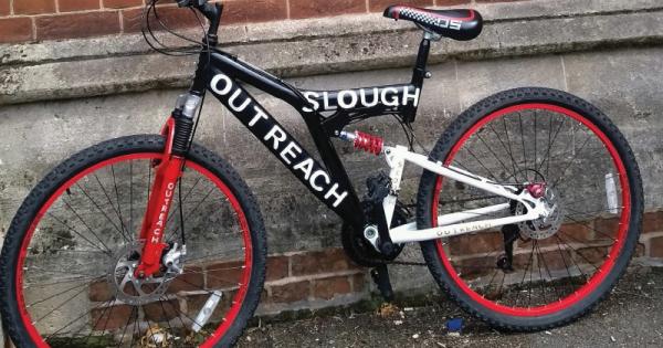 After gathering spare parts, two of the group’s members, Rose and Rob, put together a bicycle which features the Slough Outreach logo.