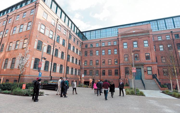 The refurbishment of the iconic red-brick factory has been centre piece of the project with the building now featuring 161 apartments, a cinema, co-working space and roof-top garden.