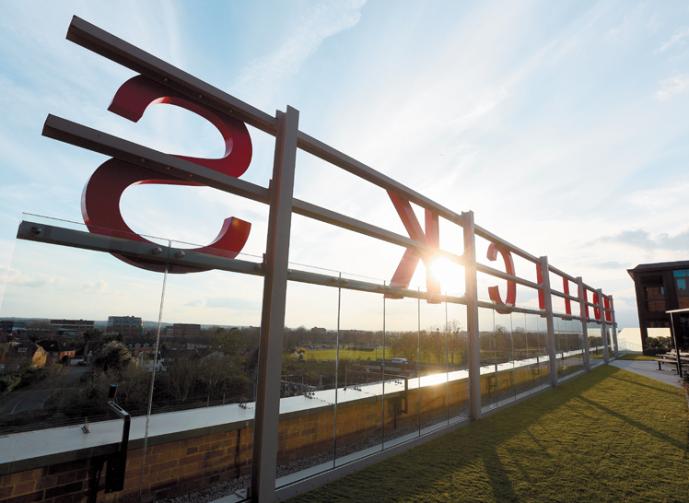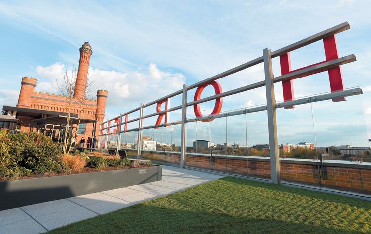 The red lettering on top of Slough’s refurbished Horlicks Factory has been illuminated to mark the next chapter in the building’s history.