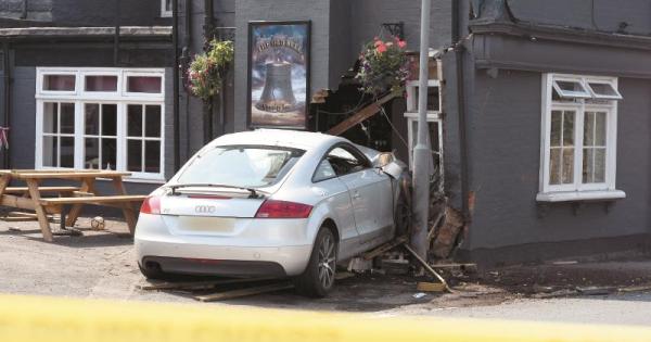 Police were called to reports of a road traffic collision at 11.48pm and found a silver Audi TT had collided into the pub in Town Lane.