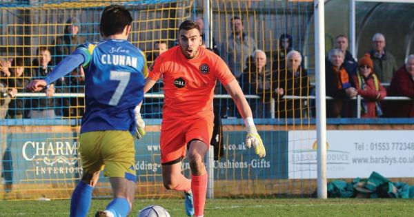 Dan Gyollai, pictured against King's Lynn Town on Saturday, was beaten three times in the first half against Dagenham & Redbridge.