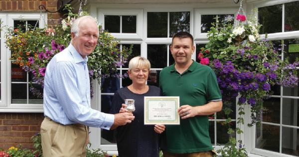A trophy was presented on Sunday, July 23, to landlady and landlord Sarah Birchill and David Thomas by horticultural society president Jon Homan.