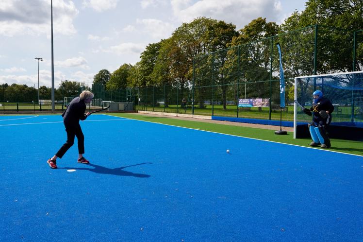 The new pitch, which Mrs May tested out at the opening, was the result of a range of fundraising efforts including pre-COVID-19 club events by both the hockey club and Berkshire County Sports Club, such as the Sonning 10k race, as well as general club fundraising, primarily by Berkshire County Sports Club.