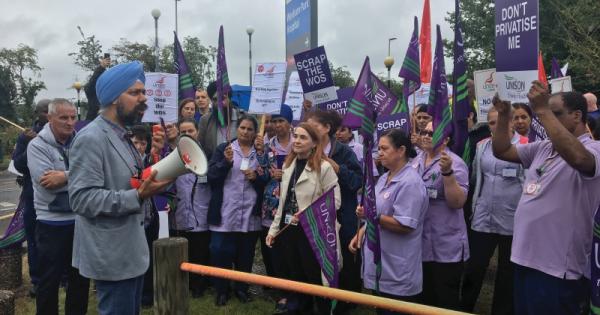 Hospital staff, UNISON members and representatives from the Slough Trades Council were among the protesters with chants of ‘no ifs, no buts, don’t privatise us’ ringing out.