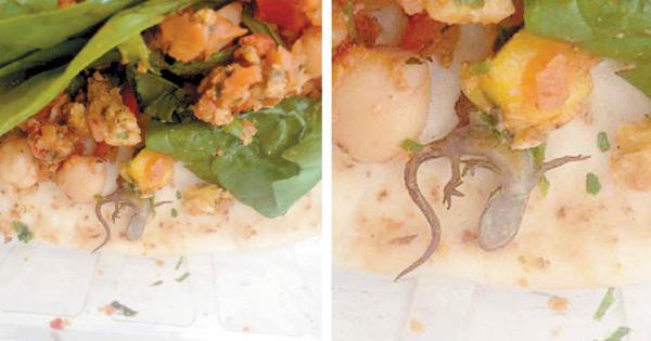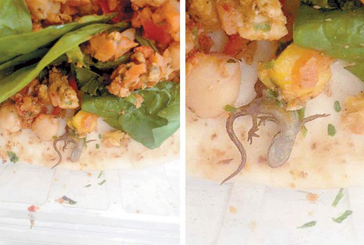 An unsuspecting customer got more than she bargained for when she found a dead newt in her lunchtime snack.