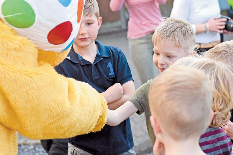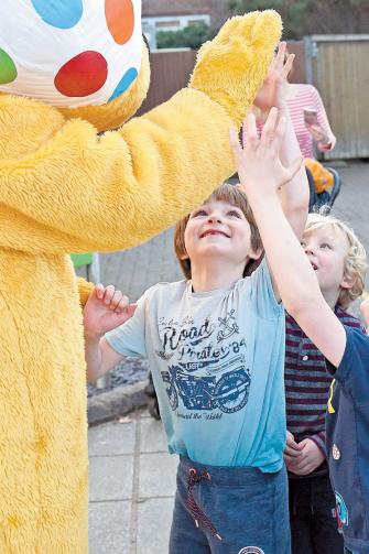 The beloved TV mascot spent time with patients, family and staff at the charity’s Hatch Lane facility on Wednesday (Feb27).
