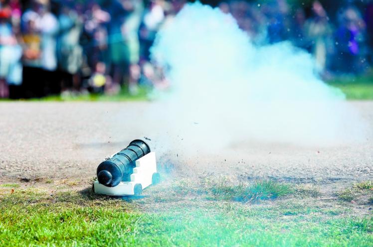 As usual, a number of children attending the ceremony were chosen at random to fire a cannon, under the safe supervision of an ordnance expert and in the presence of local dignitaries.