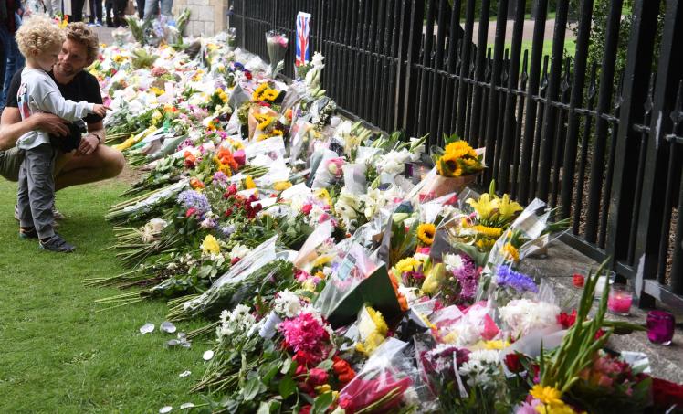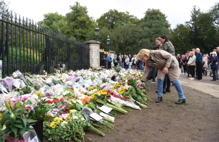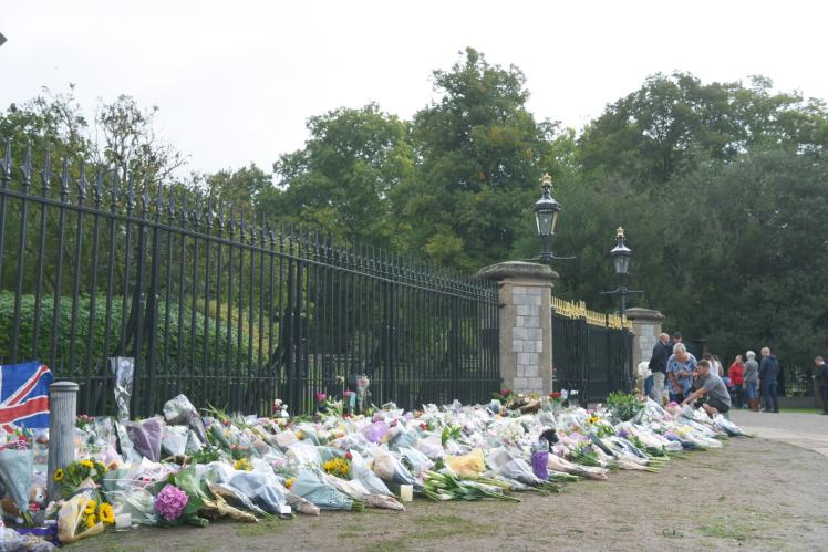 A sea of tributes thanking the Queen for her lifetime of service have been placed outside Windsor Castle’s Cambridge Gate.