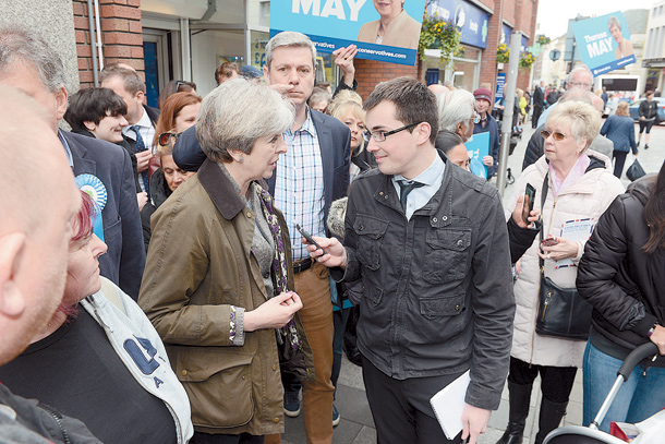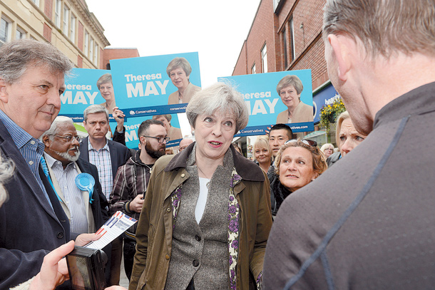 Theresa May MP shook hands with constituents, talked to them about Brexit and posed for selfies.