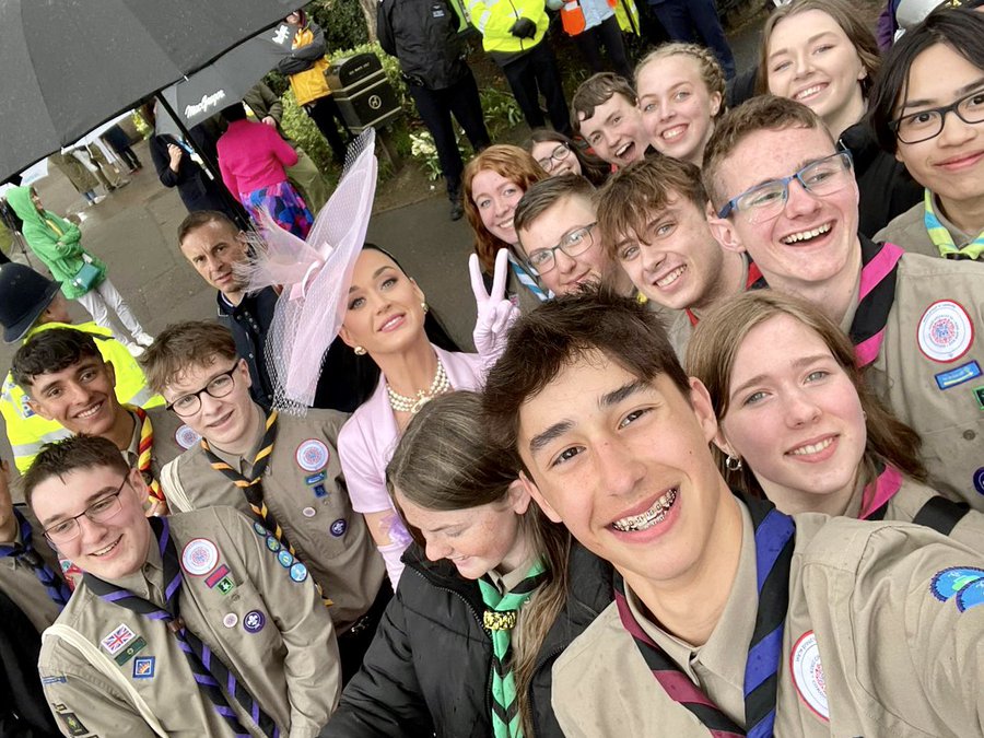 After the coronation, Scouts greeted King Charles III to wish him a long happy reign – and ran into pop star Katy Perry.