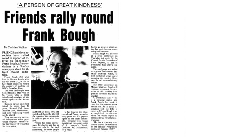 An article in the Advertiser on June 3, 1988 (above) on Bough's friends rallying round in support of the TV presenter