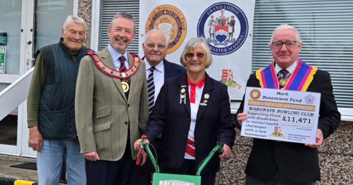 WARGRAVE Bowling Club welcomed members of the Provincial Grand Lodge of Mark Master Masons of Berkshire who were representing the Mark Benevolent, to hand over their generous donation of £11,471 to fund a new lawn-mower for the club.